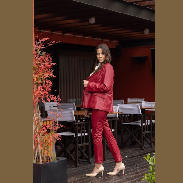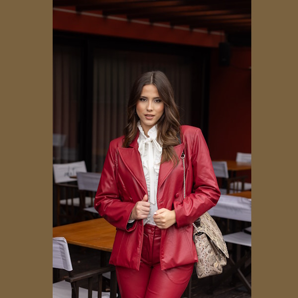 Blazer clássico em polipel  de fato com gola e lapela, ideal para coordenados sofisticados e versáteis.