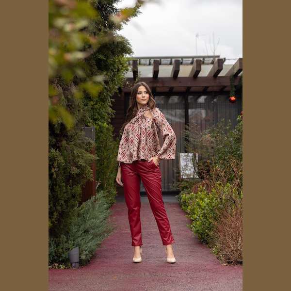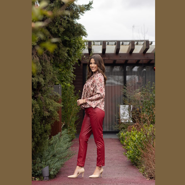 Calça  em tecido polipele  que alongam a silhueta e conferem um caimento elegante.
